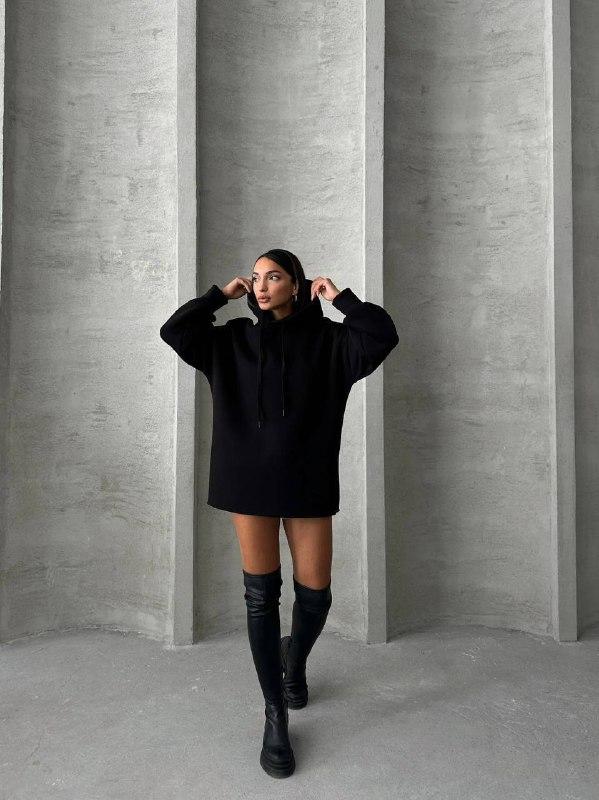 Подовжене ХУДІ. Подвійний капюшон. Розміри - over size (42-46) Тканина - Тринитка на ФЛІСІ. Колір: беж, фісташка, чорний. ЗАМІРИ Розмір 42-46 Довжина 80 см Об'єм грудей 120 см Довжина рукава 75 см зеф