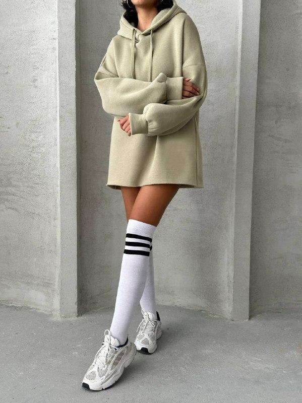 Подовжене ХУДІ. Подвійний капюшон. Розміри - over size (42-46) Тканина - Тринитка на ФЛІСІ. Колір: беж, фісташка, чорний. ЗАМІРИ Розмір 42-46 Довжина 80 см Об'єм грудей 120 см Довжина рукава 75 см зеф