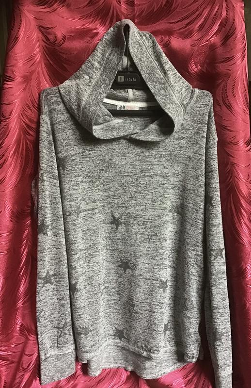 Худі на ранню осінь відомого бренду H&M на хлопця, може бути унісекс, на зріст 170 см., обʼєм грудей 88-91. Матеріал мʼякий, плавно розтягується, приємний на дотик. Колір мʼякий сірий у сіру смужку різних відтінків, малюнок - сріблясті зірки в тон. Особливості моделі - з боків невеличкі розрізи для зручності носіння, спинка трохи длиніша за передню частину. Склад матеріалу: 75% віскоза, 22% поліестер, 3% еластан. Стан дуже хороший, манжети та низ речі не розтягнуті. Довжина 60 см., ПОГ - 44/45, довжина плеча 11 см, довжина рукава з манжетом 60, довжина манжета 6 см, напівдовжина капюшону попереду 36 см, напівширина капюшону 24 см.
