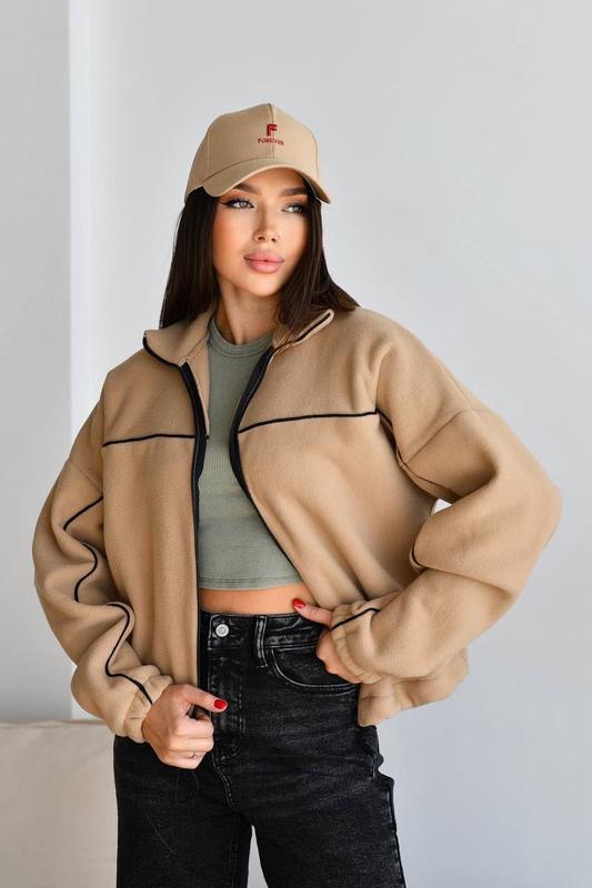 Зип худи из двухстороннего флиса - уют и стиль Это зип худи из мягкого двухстороннего флиса сочетает максимальный комфорт и трендовый вид. Благодаря объемному крою и теплой ткани, оно идеально подходит для прохладной погоды, обеспечивая уют в течение дня. Характеристики: - Размеры: 42-44, 46-48 - Ткань: двусторонний флис - Цвета: молоко, джинс, графит, голубой, беж, мокко, черный, малина, зеленый - Объем груди (ОГ): 120/132 см - Обхват талии (ОТ): 112/116 см - Длина: 60/62 см - Длина руква: 80/83 см Это худи обеспечит вам тепло и стильный вид, позволяя легко создавать разные образы для повседневной жизни.