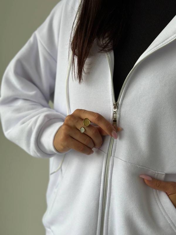 - Ткань: изготовлена из двухнитки с петлей и трикотажной подкладкой. Это обеспечивает легкость, мягкость и комфорт при носке. Ткань хорошо сохраняет форму и обеспечивает циркуляцию воздуха, что делает худи удобной для ношения в течение дня. - Цвет: 1. Черный- классический, универсальный и всегда актуальный. 2. Белый – свежий и чистый оттенок, который добавляет легкости образу. 3. Бордо – насыщенный и стильный цвет, что добавляет выразительности. - Размер: подходит для размеров 42-46, что делает худи универсальной и комфортной для разных типов фигур. Это зип худи сочетает в себе стиль, удобство и качественные материалы, идеально подходит для повседневной носки.