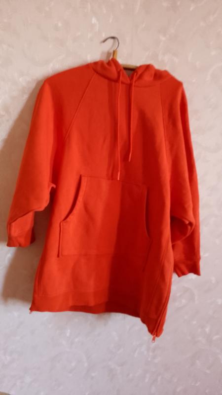 худи оранжевого цвета с молниями по бокам снизу, оверсайз