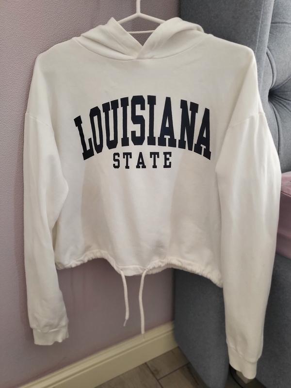 Укороченное худи на флисе от H&M, несмотря на размер 12-14 лет, подойдет на XS-S, 100% хлопок. Незначительный перепад цвета на некоторых буквах, и на предустановленном фото едва заметная точка. длина: 46 см рукав: 68,5 си от шеи пог: 57 см