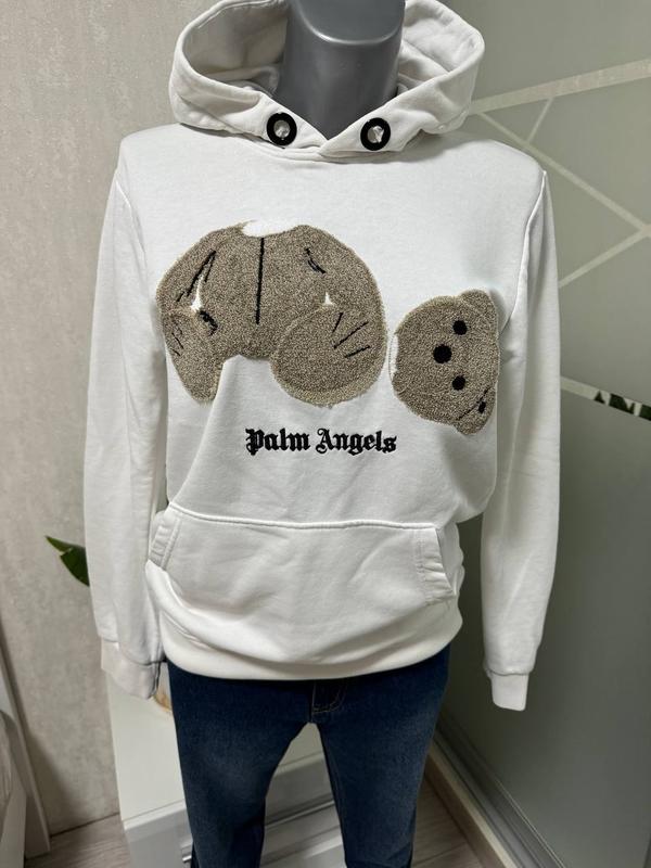 Классное худи с медвежонком от Palm Angels. В очень хорошем состоянии. Отсутствует шнурок на папюшоне и есть небольшой штрих на плече бледно-розового цвета ( последнее фото) Размер идет на XS-S