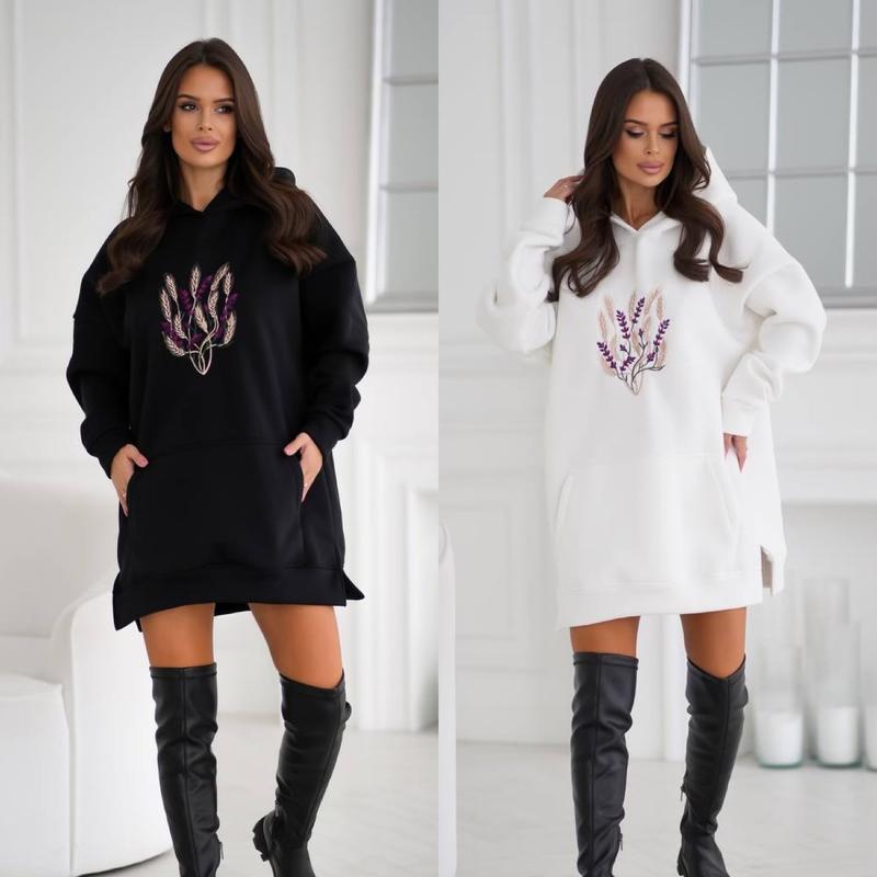 💛💙 💛💙НОВИНКА💛💙💛💙 Модель 7537 Размір: S-M (42-44), L-XL (46-48) ➡️ худи oversize ➡️трикотаж трьохнитка на флісі ➡️спущений рукав ➡️бокові кишені ➡️машинна вишивка ➡️капюшон Колір: чорний, молочный Довжина: Перед-82 см Зад- 85 см Рукав -50 см (Плечі спущені) Подовжений худі вільного крою на флісі. М'яка тканина, приємна до тіла. Перед декоровано контрастною вишивкою. Є кишені, що діють.