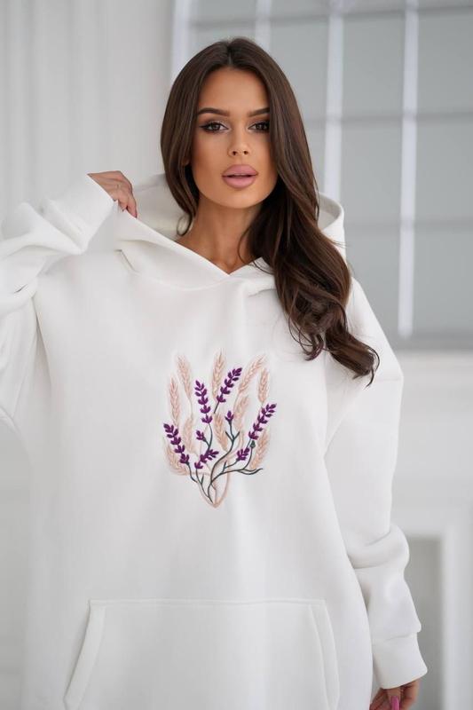 Модель 7537 Размер: S-M (42-44), L-XL (46-48) ➡️ худи oversize ➡️трикотаж трьохнитка на флісі ➡️спущенный рукав ➡️боковые карманы ➡️машинная вышивка ➡️капюшон Цвет: черный, молочный Длина: Перед-82 см Зад- 85 см Рукав -50 см (Плечи спущены) Удлиненный худи свободного кроя на флисе. Мягкая ткань, приятная к телу. Перед декорировано контрастной вышивкой. Есть действующие карманы. Цена 750 грн.✅