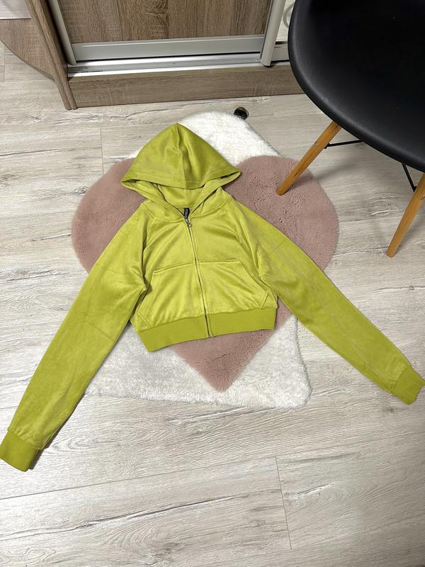 вкорочена велюрова зіпка від H&M. стан ідеальний. довжина- 42см; ширина під руками- 47см; ширина знизу- 34см; довжина рукава- 74см