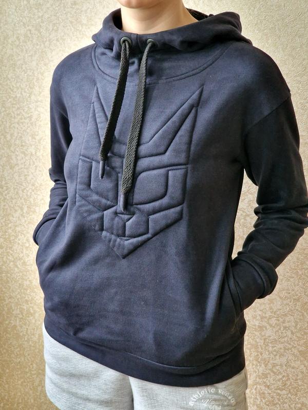Худи женское на флисе из материала, напоминающего замшу. Из-за срезанных бирки, название бренда не известно, но это худи от какого-то украинского бренда. Купила за 1500 грн. Стан 8/10 ЦВЕТ: темно-синий РАЗМЕР: так как бирки я сразу после покупки срезала, оф.размера незначительной. Но подходит на XS-S. Полуобхват по низу - 46 см Полуобхват от подмышки до подмышки - 50 см Длина рукава от плеча - 56 см Ширина рукава по локте - 14 см От капюшона до рукава (плечет) - 12,5 см Длина от плеча до низа - 59 см МАТЕРИАЛ: очень приятный на ощупь, что-то типа замши. Тянется, но не рустягивается при носке. Достатньо тепла, для зими чудова. Есть два кармана. СТАН: На фото кажется, что на худи есть какие-то пятна или разводы, это особенности ткани. В жизни, худи в хорошем состоянии, цвет однородный, темно-синий. Никаких грязных пятен, катышков или подобных нет. если есть вопросы - пишите!