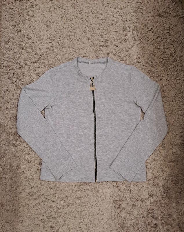 женская кофта на молнии серого цвета размер М ширина в груди 46 см длина 55 см длина рукава 60 см