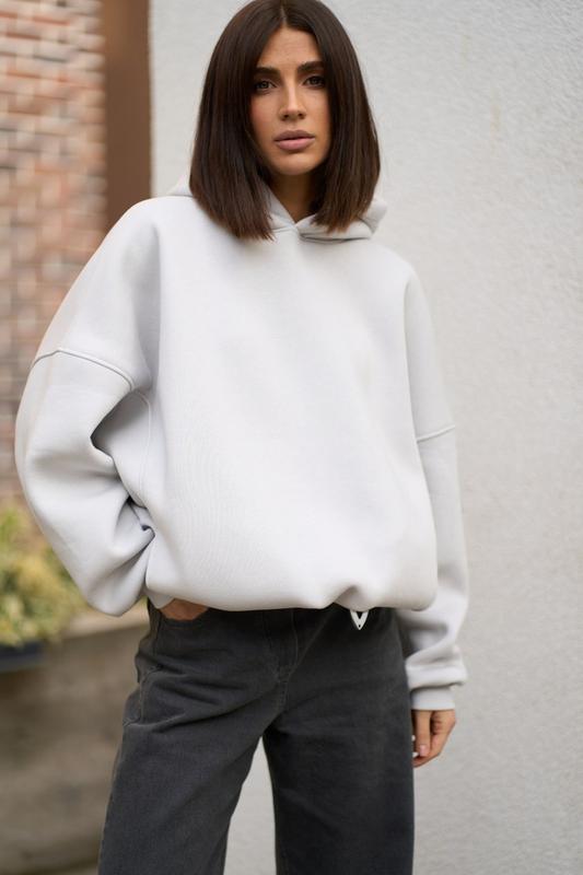 Есть после платья и обмен Худи с капюшоном свободного кроя в едином размере, манжеты из ребры, опущенное плечо, есть боковые карманы, капюшон двойной, по низу шнурок с фиксатором Ткань трехнитка на флисе, турецком производстве, премиального качества пене Не кашлатится, отлично держит тепло в холодное время года Замеры: Ширина груди 80 см Рукав от горла 78 см Длина 70 см 49003