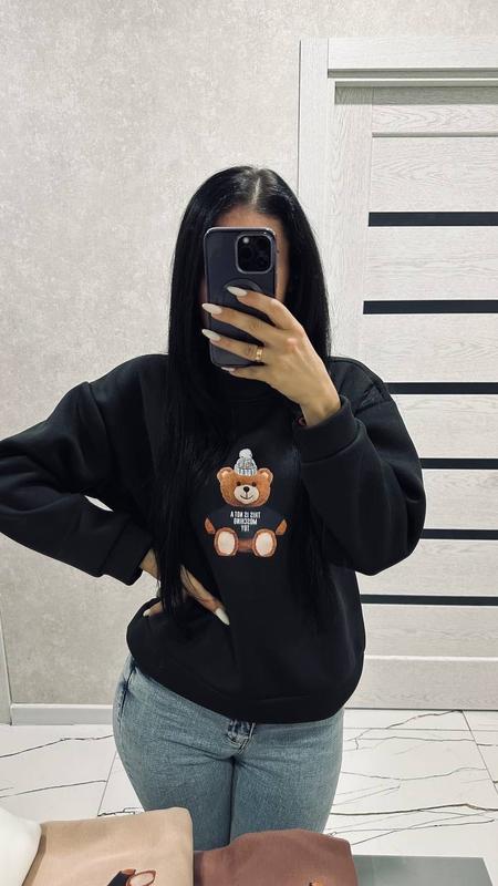 фото реал ♥️Милые худи Мод: 343 Размер: 42-46 Цвет: шоколад,молок,черный,беж Ткань: качественная трехнить на флисе 💥 👍Шикарного качества!