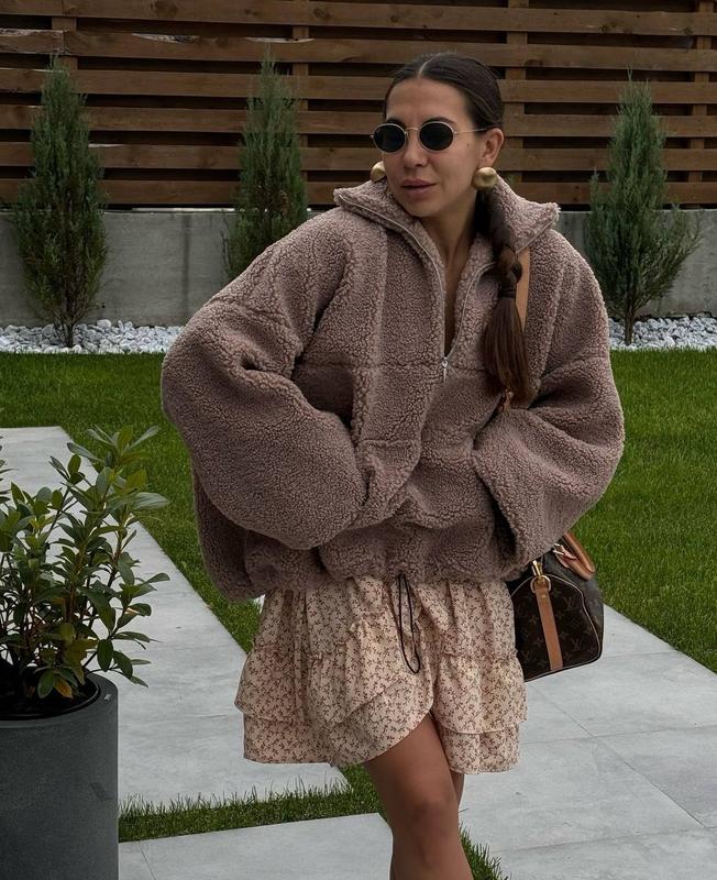 Худи из барашка самая комфортная вещь в гардеробе этой осени на зиме. Как говорится-накину и побег. Тепленьке, мʼякеньке. Объемное как на фото. Длинные рукава, на манжетах резинка. По низу худи также регулируемая резинка в цвет тканей. На молнии, которая скрыла каблуком, качество ТОП Материал: барашек Цвет: молочный, мокко, серый Размеры: S-L(Универсал) Параметры: Длина изделия 76 Длина рукава 79 ОГ-122 ОТ-140