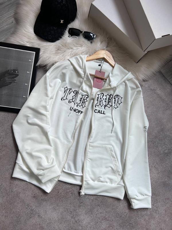 ФОТО Реал⚠️ Соп худи Код 179 Тканина: двухнитка Люкс + Вишивка Размер: 42-46 Универсал Цвета: молоко, черный, шоколад 💵Цена 700 грн🔥 Стильный худи с капюшоном в стиле оверсайз. Идет на молнии и имеет карманы. Надписи вышиты! На рукавах нашивка (может немного отличаться). Красивые цвета.