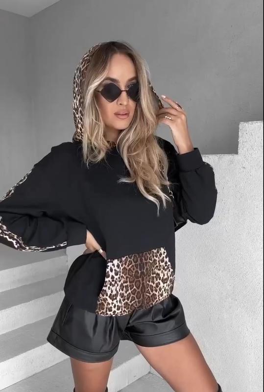 🔝🔝🔝НОВИНКА🔝🔝🔝 Худи ▪Модель : 7001 ▪690 La ▪Ткань: двухнит Турция ▪Цвет: черный /лео ▪Размер: 42-46,48-52 ✅ ПРЕМИАЛЬНАЯ КАЧЕСТВО ПОШИТКА