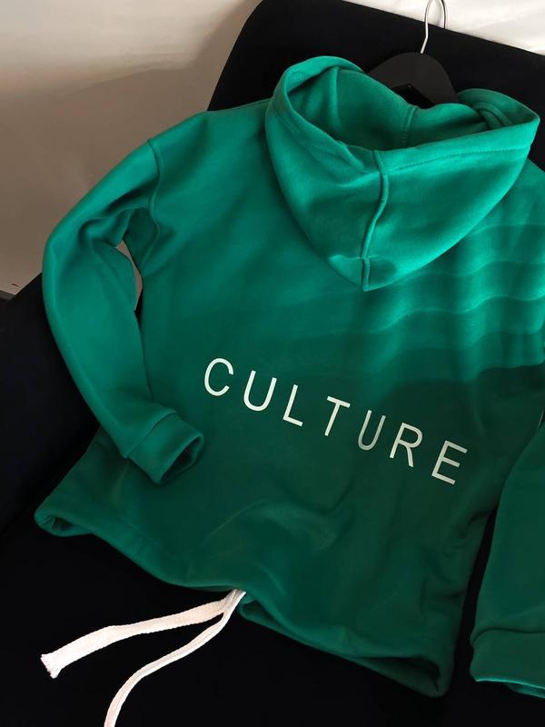 ❤️ Худи CULTURE Мод. 1378 Ткань: трехнитка на флисе Цвет: черный, зеленый, розовый Размер: 42-48 Стильный теплый худи оверсайз с макси надписью на спинке. Регулирующая шнуровка по низу позволяет носить худи в удлиненном варианте и укороченным, затянув поясок. Глубокий капюшон, спущенная линия плеча, манжеты из основной ткани. 42/48 Длина 70 см ОГ 130 см Рукав от ворота 77 см