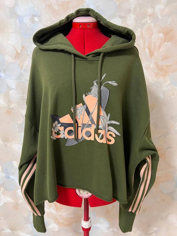 Худи Adidas оверсайз женский, длинна 60см, рукав длинный прособирается. подойдёт на 44-48рр. Цвет хакки