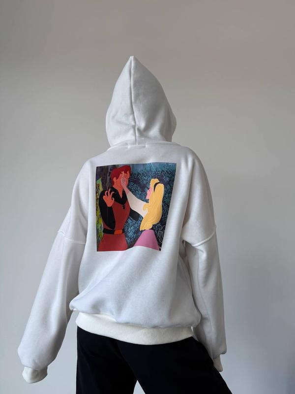 Стильный и восхитительный женский худи с принтом -Размир: 42-46 -Ткань: трехнитка на флисе -Цвет: черный, белый