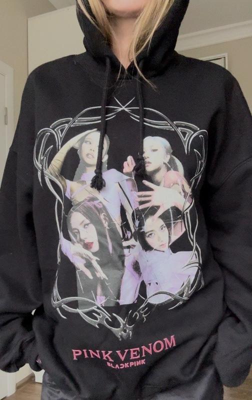 Культове худі від Bershka з актуальним гумовим принтом PINK VENOM Ідеальний стан Розмір s Вільний крій Капішон зі шнурком, кишеня кенгуру