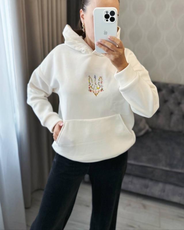 Худи Худи OverSize unisex Модель 381/1381 Размеры 42/46 и 48/52 Ткань : трех нить на флисе, очень теплая, качественная Универсальное худи с кармашком спереди, низ и рукава на манжетах, капюшон без шнурка Цвета молочный Накатка очень качественный Термонакат ПОГ 58см /62 см, длина 68см/70см