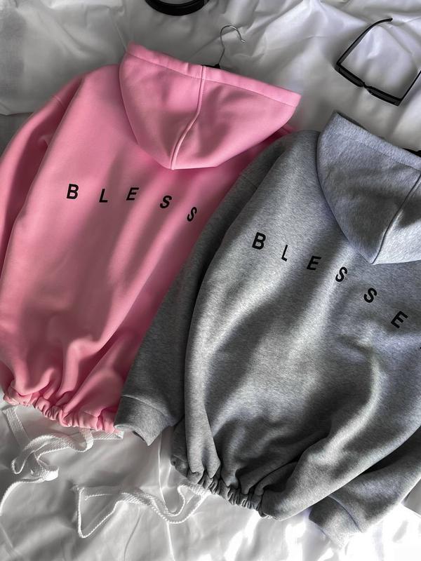 BESTSELLER 🔝🔝🔝 🔝РЕАЛ ФОТО📸 🔸Худі BLESSED ▪️Модель: 1584 ▪️Тканина: турецька трьохнитка на флісі ▪️Розмір: 42-48 (oversize) ▪️Колір : чорний, меланж, білий, рожевий 🏷Ціна 700 грн 💬WoW новинка💥 Стильний теплий худі оверсайз з трендовим написом на спинці🔝 Регулюча шнурівка по низу дозволяє носити худі в подовженому варіанті і вкороченому, затягнувши поясок. Глибокий капюшон, спущена лінія плеча, манжети із основної тканини. Якісна накатка. ЗАМІРИ ВИРОБУ: Довжина 70 см ОГ 130 см Рукав від ворота 77 см