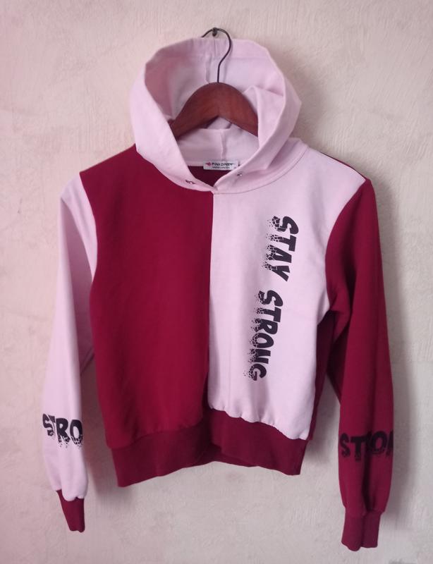 кофта спортивная кенгуру с капюшоном, цвет вишневый+ с розовым оттенком, несколько укороченная, замеры скина, на бирке размер M, ноmon лучше подойдет на S.