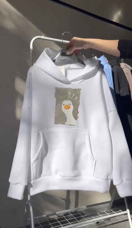 Худи на флисе теплое стильное оверсайз кофта с капюшоном и карманом толстовка с гусем удоб...
