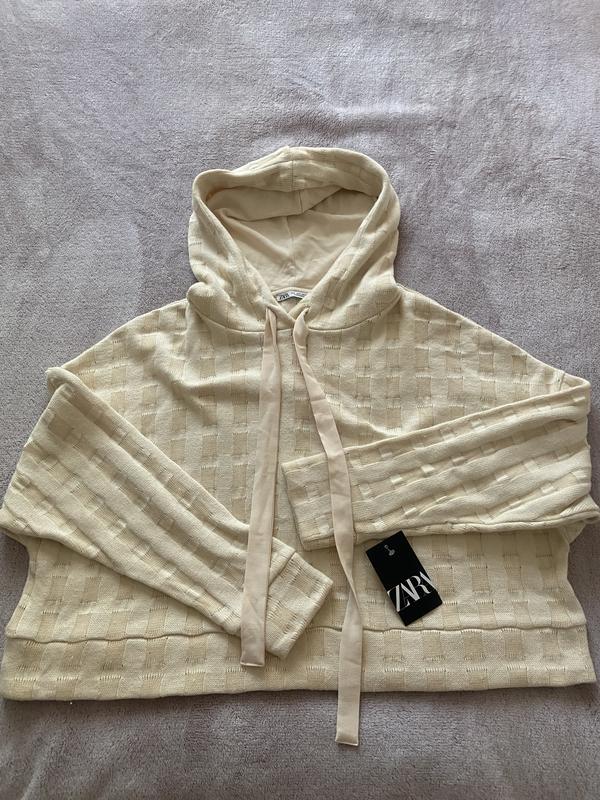 Оригинальное НОВОЕ худи ZARA цвета айвори. Двойной капюшон. На этикетке указан размер S, но полномерит будет на М (44-46). Замеры указаны на фото. Без недостатков, очень красивое, качество топ.