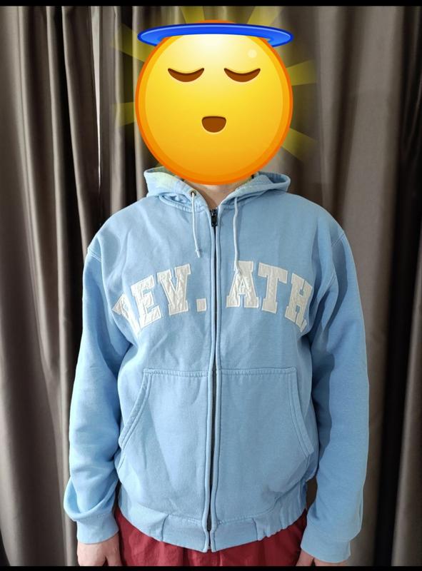 Теплый Худи Review голубого цвета, Размер по факту M. Хотя на бирже XL. На фото рост 175.