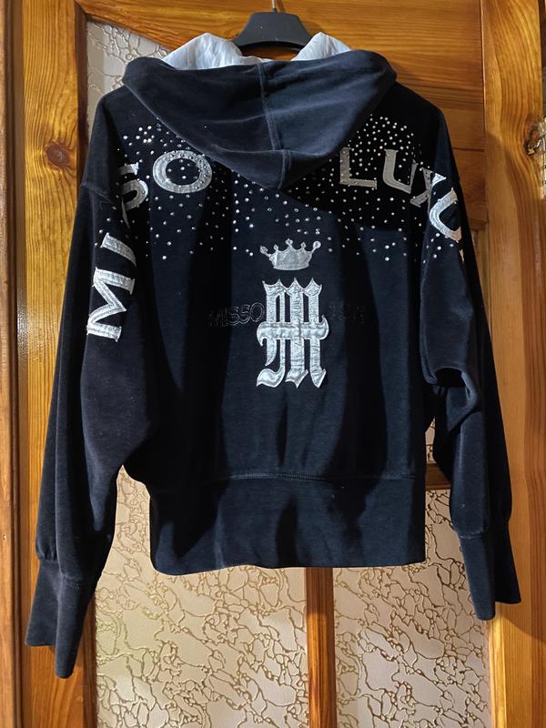 Красивая кофта плюшка на молнии. В каменях і нашивках. Длина 60 груди Over сайз. Летучая мышь Рукав от горловины 76, по талии 44