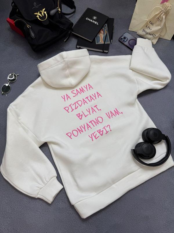 Модель ryab.649 Ткань: качественный турецкий футер (трехнитка на флисе, не кашлатится, не теряет цвет после стирки) Размеры :42-44, 46-48 Цвета: молоко, черный NEW COLLECTION ✨️ Это поджигатель🔥🔥🔥 Для девушек с юмором, лучше худи не найдешь 🥰 А еще это будет идеальный подарок на новый год подружке🫶❤️ Худи из качественной ткани на флисе, мягкая и приятная на ощупь, и не на один сезон, не теряет цвет после стирки и не скатывается 😍