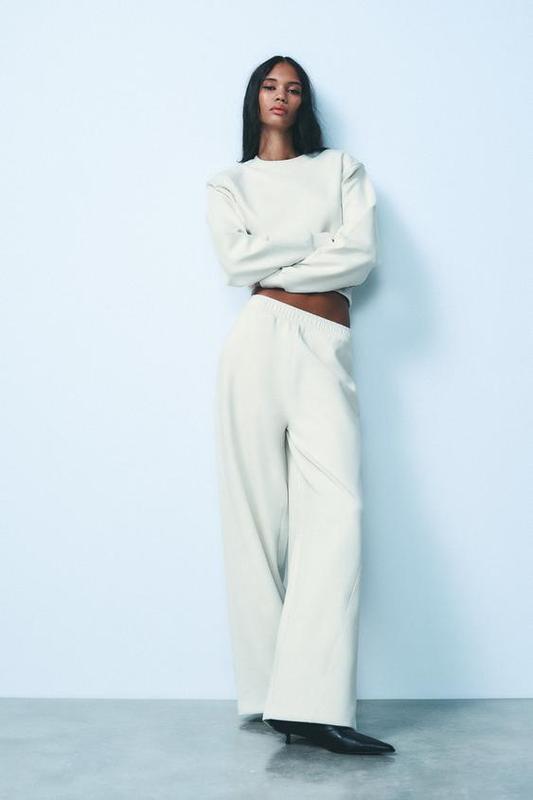 Свитшот с круглым воротником и длинными рукавами с подплечниками. Изготовлен из мягкой эластичной ткани с непрозрачным компактным переплетением. Все бирки присутствуют