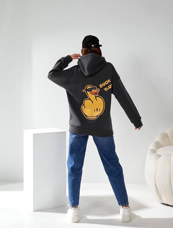 Худи “Duck you” Мод.036 Размеры: универсал Ткань: трехнитка на флисе хорошего качества Цвета: черный, графит, мокко 📌Замеры: Ог- 124 см. Длина рукава от шеи 72 см Длина по спинке 67 см