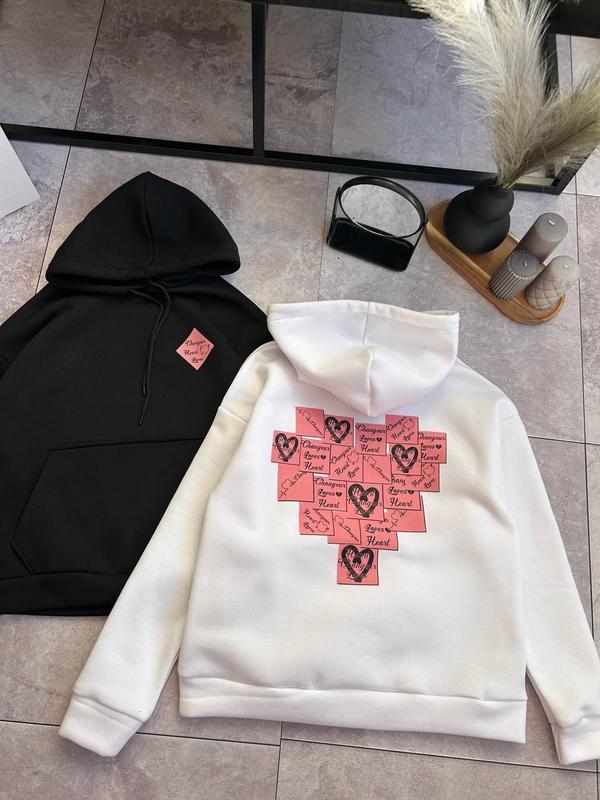 Худи Код 108/1 Ткань: Трехнитка на флисе Цвета: черный, белый Размеры: 42-46 Универсал Базовые худи с модным принтом ❤️. С карманом кенгуру и капюшоном, как на фото. Качественная накатка. Возможно, как парные.