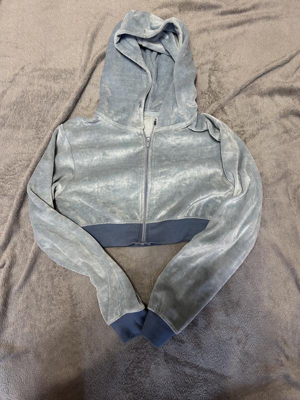 Невероятно красивого голубого цвета (камера не передает) кофточка от Prettylittlething. Без бирки, но под капюшоном при ношении нюансов не видно