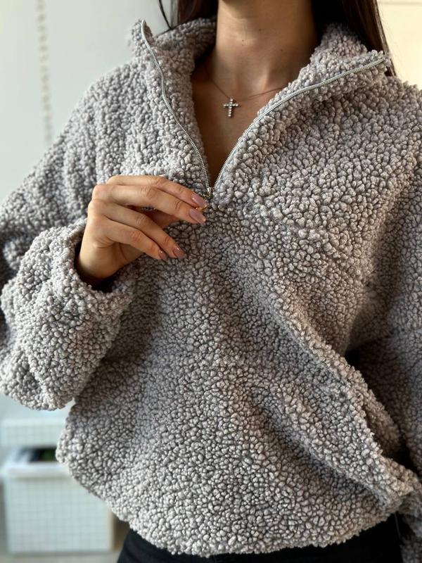 Худи арт. clt. 2020 Материал: барашек Цвет: молочный, шоколад, серый Размеры: универсал S-L Худи из барашка - самая комфортная вещь в гардеробе этой зимой. Как говорится -накинул и побег. Тепленьке, мʼякеньке. Объемное как на фото. Длинные рукава, на манжетах резинка. По низу худи также регулируемая резинка в цвет тканей. На молнии, которая скрыла каблуком, качество топ! Создано с чувством стиля.