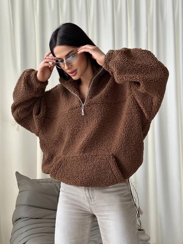 Худи арт. clt. 2020 Материал: барашек Цвет: молочный, шоколад, серый Размеры: универсал S-L Худи из барашка - самая комфортная вещь в гардеробе этой зимой. Как говорится -накинул и побег. Тепленьке, мʼякеньке. Объемное как на фото. Длинные рукава, на манжетах резинка. По низу худи также регулируемая резинка в цвет тканей. На молнии, которая скрыла каблуком, качество топ! Создано с чувством стиля.