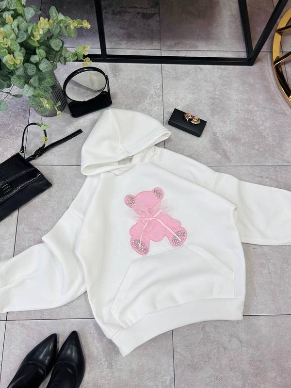 🩷Теплый худи с мишкой Фото реал Мод: 727 Ткань: Качественная трехнить на флисе Размер: 42-46 Цвет: Белый Качественное исполнение Удобный и практичный
