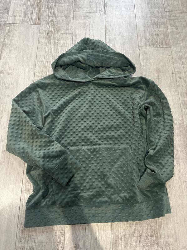 Теплый худи цвета полынь. Грудь 140см, внизу 135см, рукав от капюшона 85см, общая длина 77см.