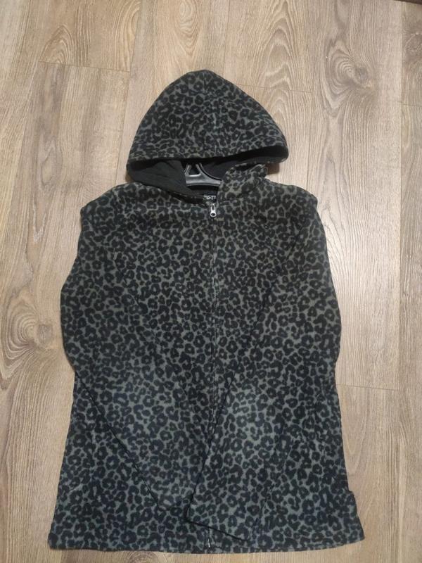 Дуга красивая и теплая флиска в актуальном кипятке, на молнии, есть карманы, капюшон.Замеры : длина 69 см, ширина 49 см, рукав 62 см.Разм указан 42, но идет на м,l.