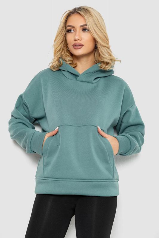 Утепленное худи мятного цвета, с карманами. Состав: 70% хлопок, 30% полиэстер