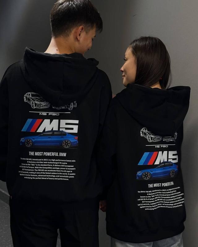 ✨ ПАРНЫЕ ХУДИ ✨ BMW M5 😎 ▪️ткань: трехнить на флисе ▪️размер : 42-48 ▪️Цвета: черный ✨ ▪️Хороший 3D накат Длина 67 см Объем грудей до 115 см Длина рукава 74 см от горловины Хит 2025 года, качество и пошив 🔥Унивесальный размер который подойдет каждому. Спереди базовое худи с карманами.