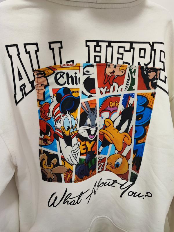 утепленное худи, есть небольшие пятна впереди, также слегка желтая горловина, оверсайс, удлиненный