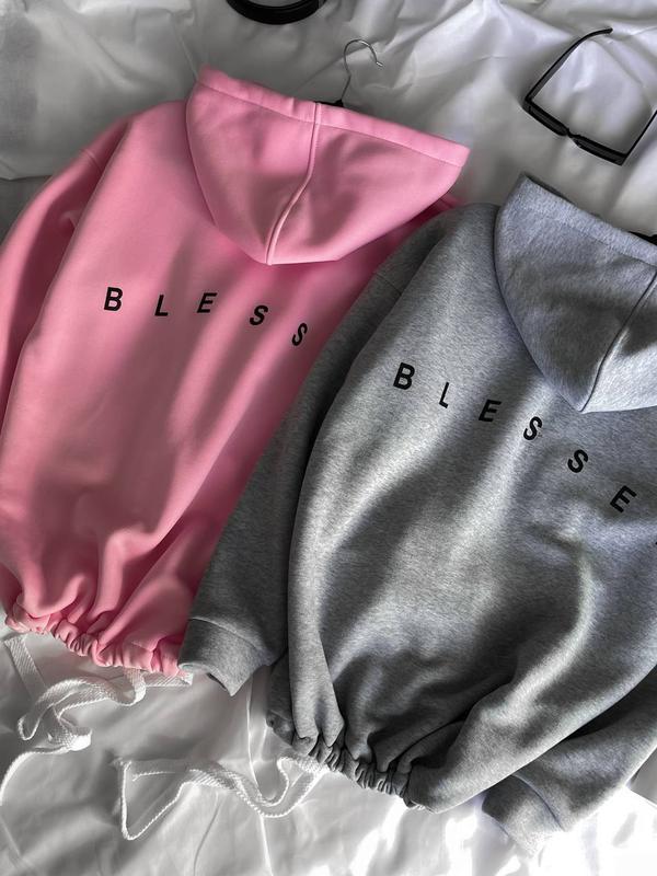 BESTSELLER 🔝🔝🔝 ‼️РЕАЛ ФОТО‼️ Отримали у кількості✅ 🔸Худі BLESSED ▪️Модель: 1584 ▪️Тканина: турецька трьохнитка на флісі ▪️Розмір: 42-48 (oversize) ▪️Колір : чорний, меланж, білий, рожевий 🏷Ціна: 699 грн🔥 Супер якість за низькою ціною🔥 💬WoW новинка💥 Стильний теплий худі оверсайз з трендовим написом на спинці🔝 Регулюча шнурівка по низу дозволяє носити худі в подовженому варіанті і вкороченому, затягнувши поясок. Глибокий капюшон, спущена лінія плеча, манжети із основної тканини. Якісна накатка. ЗАМІРИ ВИРОБУ: Довжина 70 см ОГ 130 см Рукав від ворота 77 см