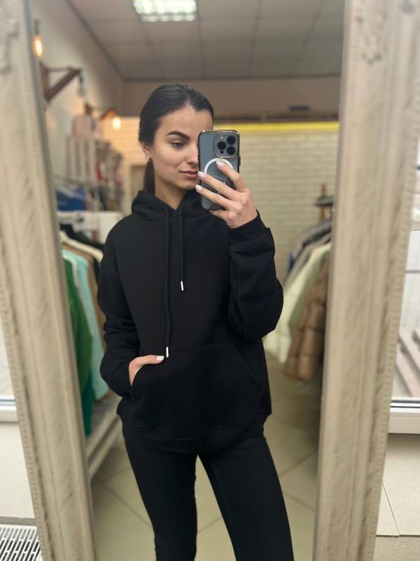 Базовое худи в черном цвете утепленное на флисе с капишоном