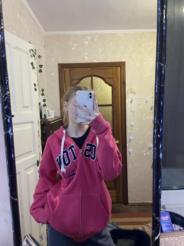Ярко розовое, теплое, оверсайз зип-худи