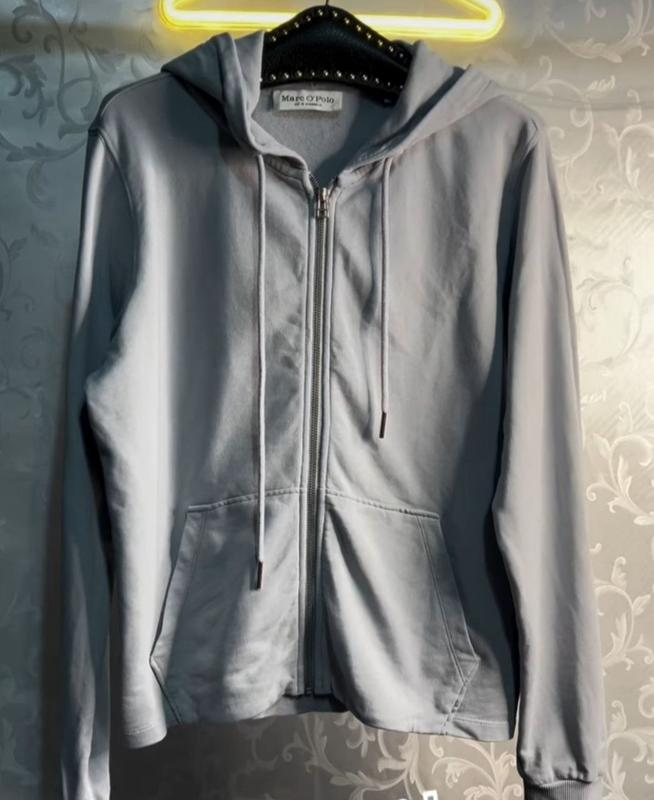 Marc O'Polo толстовка с капюшоном оригинал Лого бренда на рукавчике размер М Худи прямого кроя бавовна 3-х нитка колр свет серый замеры на фото состояние идеал