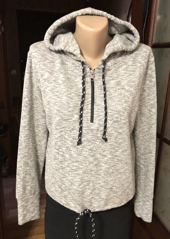 С капюшоном на шнурке. Вверху на змейке. Широкий манжет на рукаве. Внизу кофта на шнурке. Длина- 50 см. Ширина (в груди)- 50 см. Рукав- 57 см. Можно носить под джинсы можно под спортивные брюки. Отправляю Новой и Укр. Почтой
