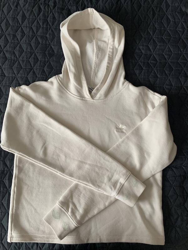 Продам женскую кофту adidas оригинал в молочном цвете с капюшоном. Сбоку небольшое вышитое лого, также на рукавах.