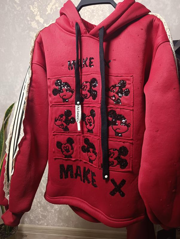 Теплий худі яскравого кольору з мікімаусами . Розмір 164 ОГ - 51 Довжина рукава - 50 Довжина - 60