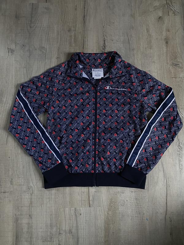Оригінальний худі Champion розміру S з лампасами на рукавах і принтом “Champion” по всій кофті. Стильна модель з яскравим брендовим принтом, який охоплює всю кофту, і лампасами на рукавах, що додають спортивного вигляду. Кишені для зручності. Ідеальний вибір для повсякденного носіння та активного стилю життя.